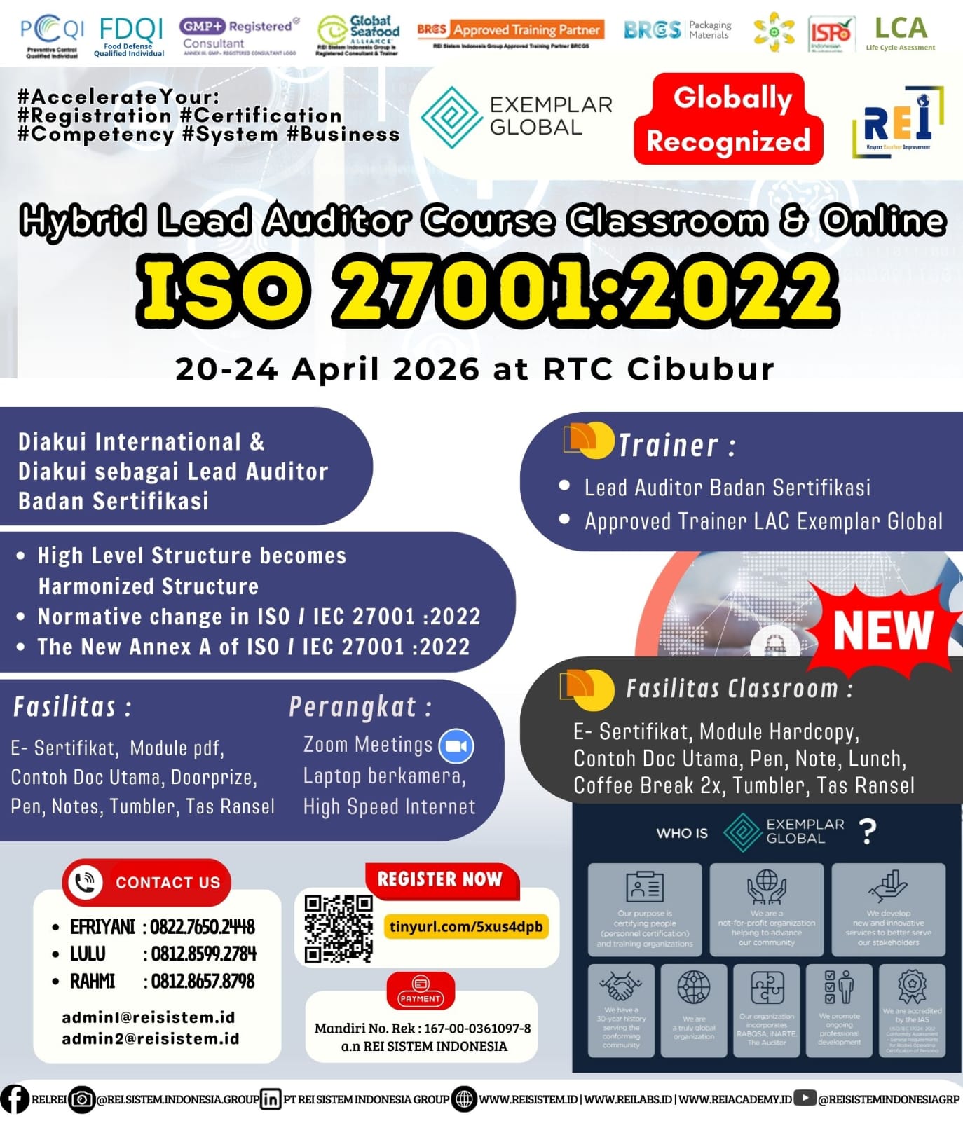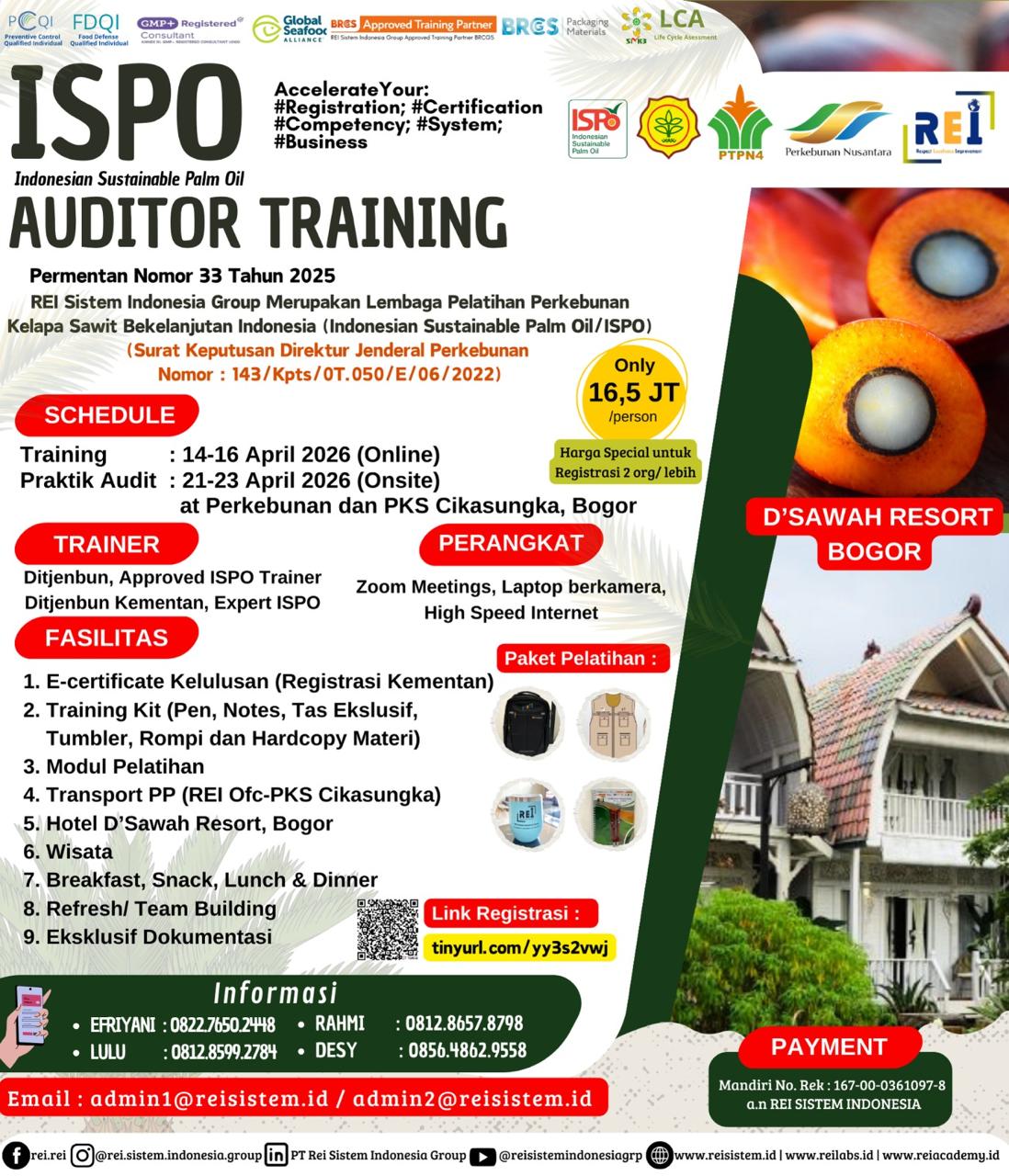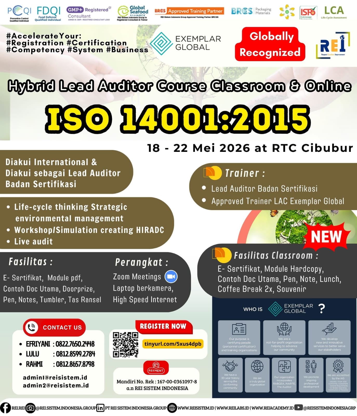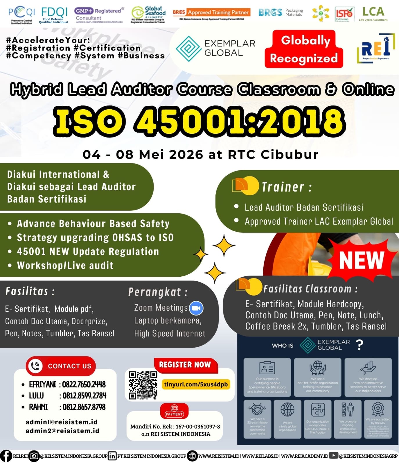 We can support many personnel certification such as PCQI US FDA Recognized, FSSC Lead Auditor Approved FSSC Netherlands, Lead Auditor IRCA CQI, SMK3,etc .
